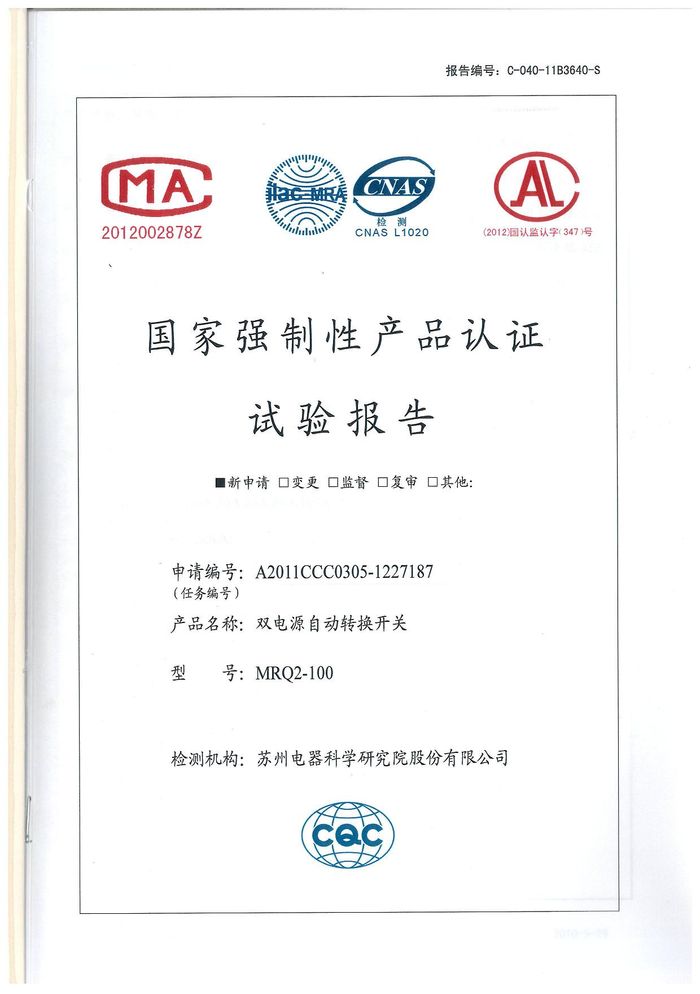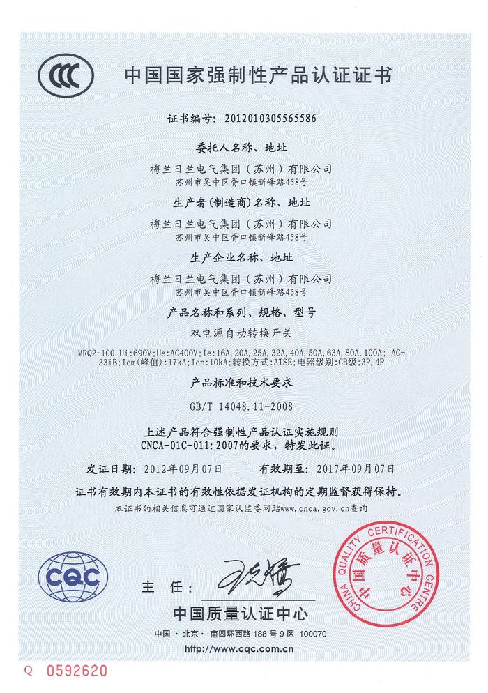 MRQ2-100雙電源資質(zhì)證書