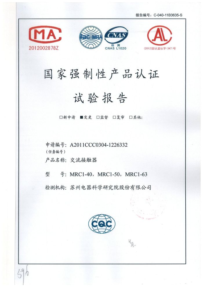 MRC1-40交流資質(zhì)證書