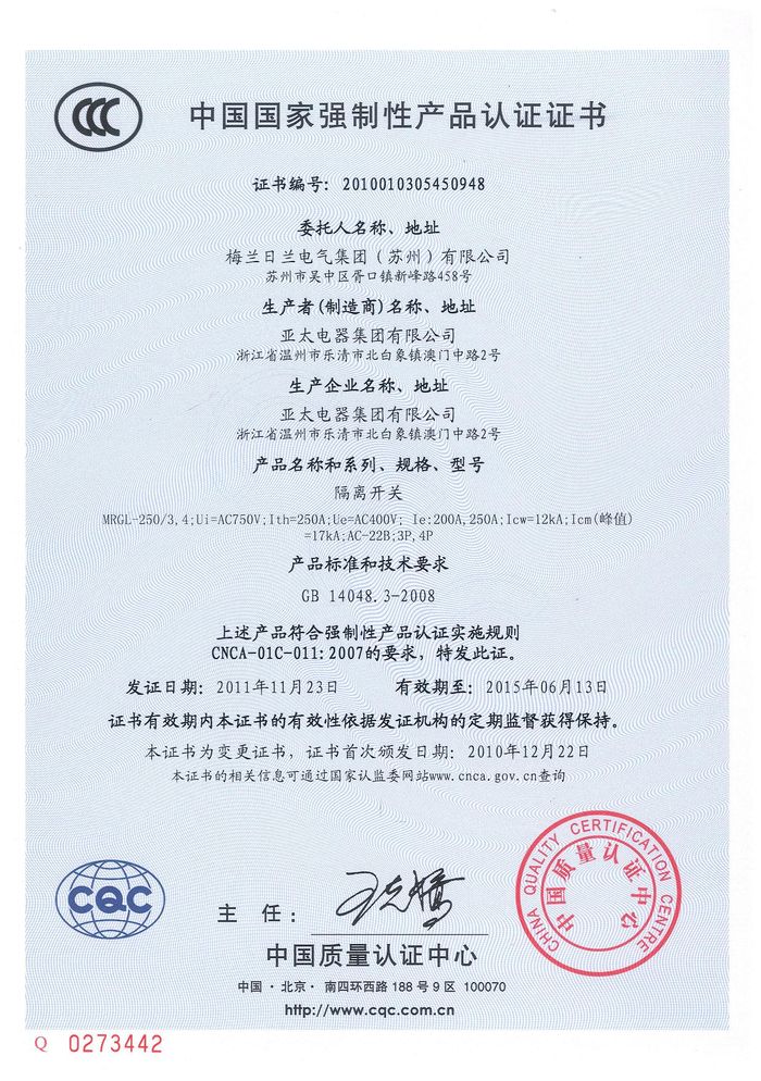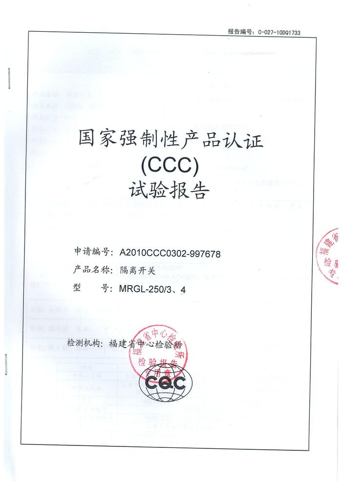 MRGL-250隔離開(kāi)關(guān)資質(zhì)證書