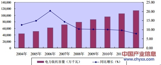 2004-2012年中國(guó)電力裝機(jī)容量及其變化趨勢(shì)