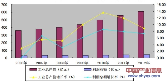 2006-2012年低壓電器行業(yè)工業(yè)總產(chǎn)值、利潤(rùn)總額增長(zhǎng)趨勢(shì)