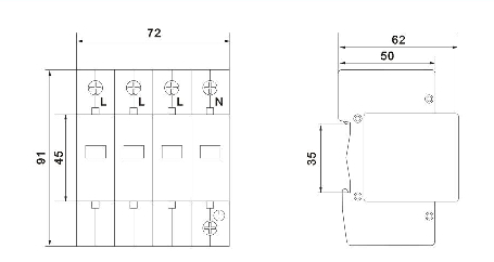 采用35mm的標準導軌安裝,連接銅質導線為2.5~16mrf12。