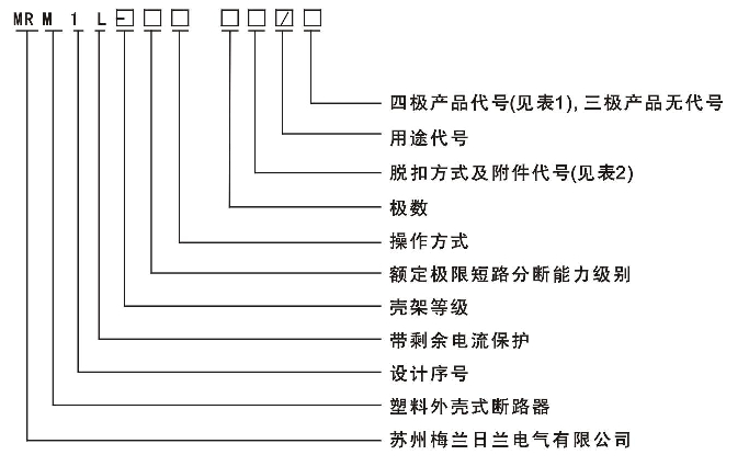 注:1)配電用斷路器無(wú)代號(hào),電動(dòng)機(jī)保護(hù)用斷路器以2表示。