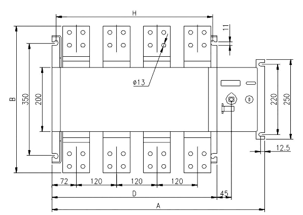 | MRQ2-1250/4 | 625 | 356 | 370 | 498 | 200 | 295 | 590 | 220 | 11 | 50 | 120 | 80 | 8 | 13 | 108 | 250 |