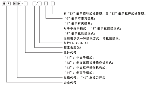 MRHD系列單投刀開關(guān)適用于交流50Hz、額定電壓至380V、直流至220V,額定電流至3000A的成套配電裝置中,作為不頻繁地手動(dòng)接通和分?jǐn)嘟?、直流電路或作隔離開關(guān)用。其中: