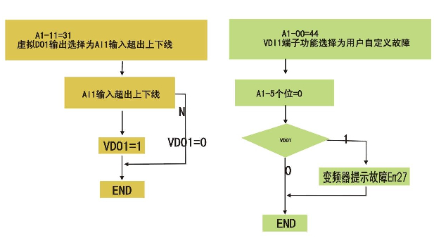 實(shí)現(xiàn)Al1超出上下限時(shí)變頻器提示故障Err27
