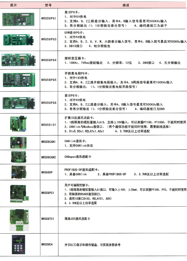 | 選配件 | 多功能輸入輸出擴(kuò)展卡、制動(dòng)組件、通訊卡、PG卡、用戶可編程卡等 |