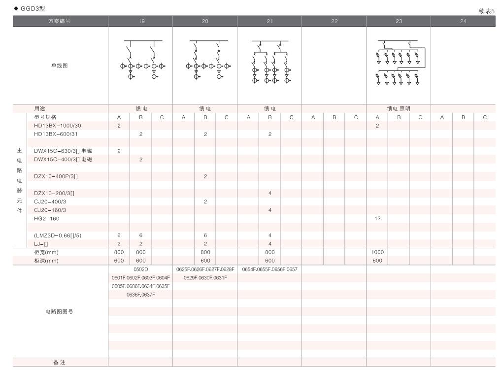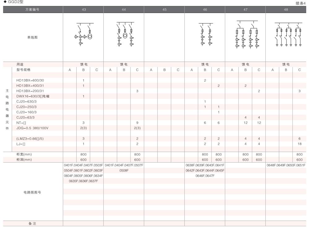 GGD柜的主電路設(shè)計7129個方案,共298個規(guī)格《不包括輔助電路的功能變化及控制電壓的變化而派生的方案和規(guī)格)。