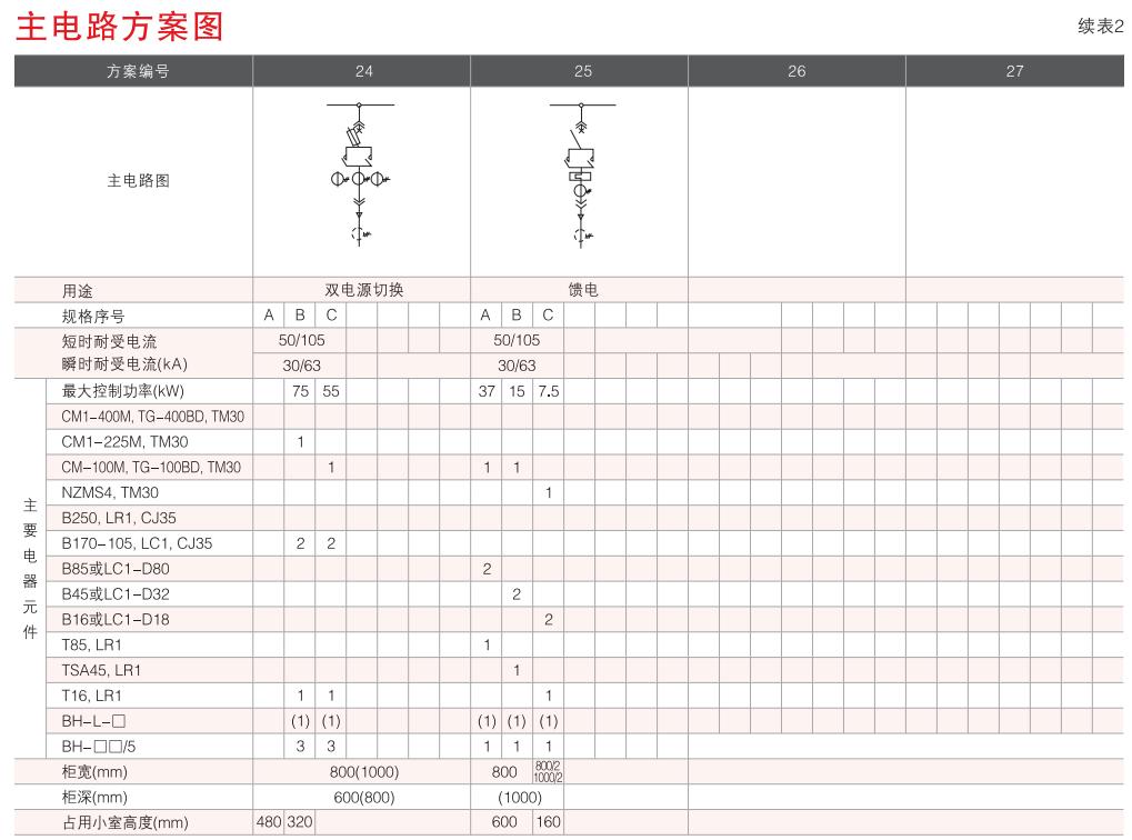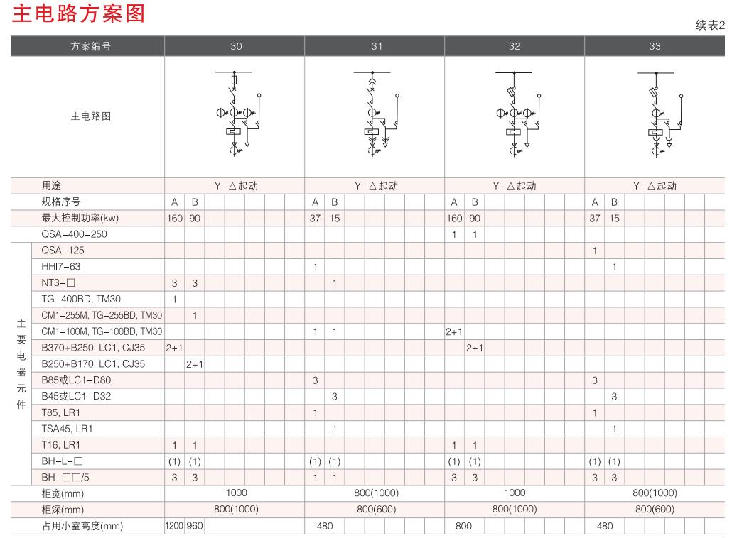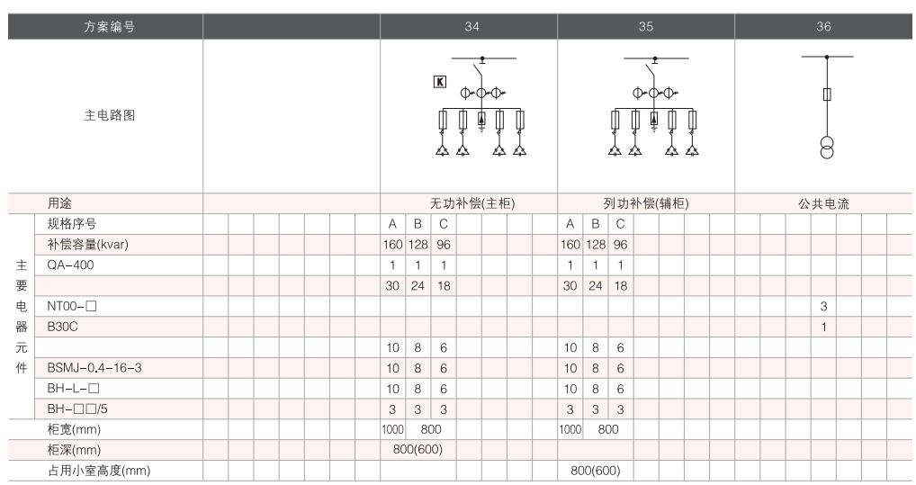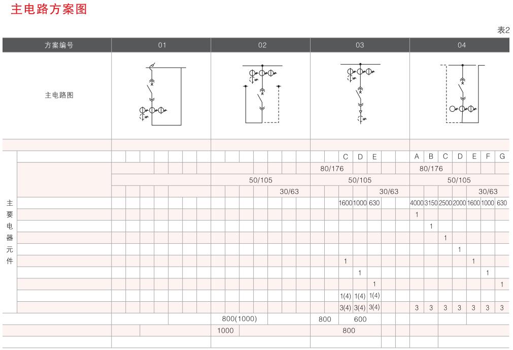 開關(guān)設(shè)備主電路方案共32組118個(gè)規(guī)格(見表2).不包括由于輔助電路的控制與保護(hù)的變化而派生的方案和規(guī)格。包括了發(fā)電、供用電和其它電力用戶的需要,額定工作電流為4000A,適合2500kVA及以下的配電變壓器選用。